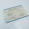 O certificado básico consta algumas características técnicas da amostra: Peso, dimensões (comprimento, largura, espessura) e material.